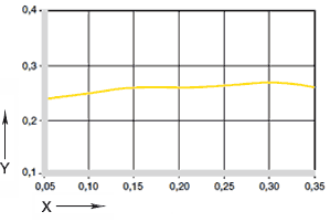 Abb. 05: Reibwerte in Abhängigkeit von der Belastung, v = 0,01 m/s