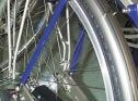 In this two-wheeler, the linkage of rear wheel to the frame is implemented by means of maintenance-free rod end bearings.